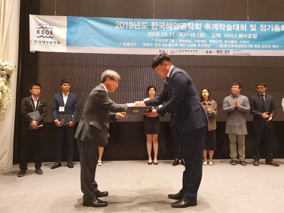 우리 연구실 장재원, Han Zhiqiang 군이 올해 상반기 제주도에서 개최된 '한국해양과학기술협의회 공동학술대회'에서 한국해양공학회 학술발표상 수상자로 선정되었습니다.