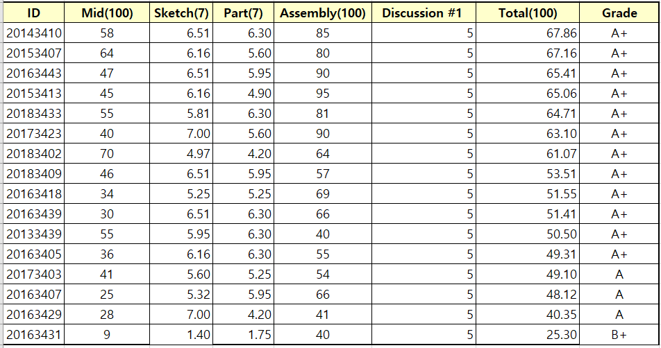 중간고사 점수 및 실습에 대한 평가결과(절대평가) 확인바랍니다.
